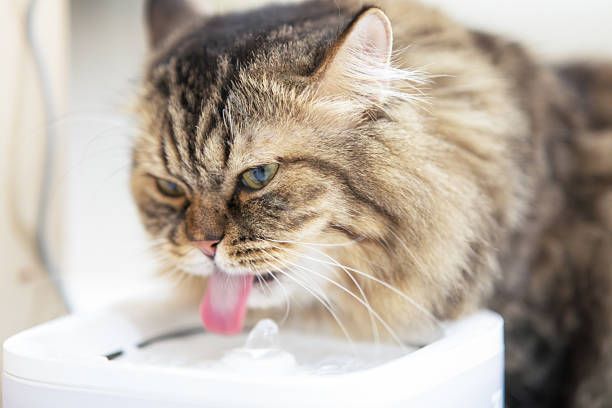 - Veillez à ce que votre chat boive suffisamment (installez des fontaines à eau, plusieurs points d’abreuvement, aromatiser l’eau de boisson avec des glaçon au jus de thon / viande/ Herbe à chat...).